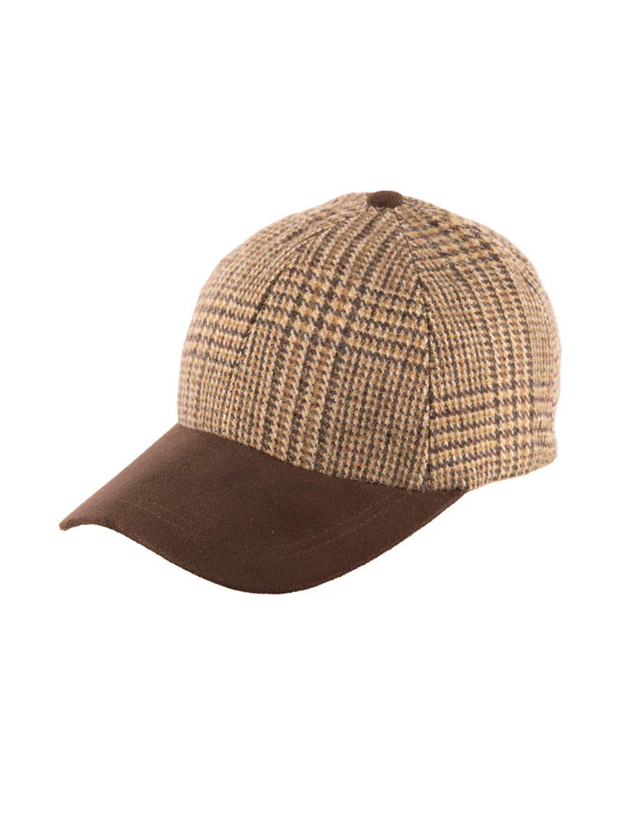 Tweed / Suede Camel Box Check Baseball Cap